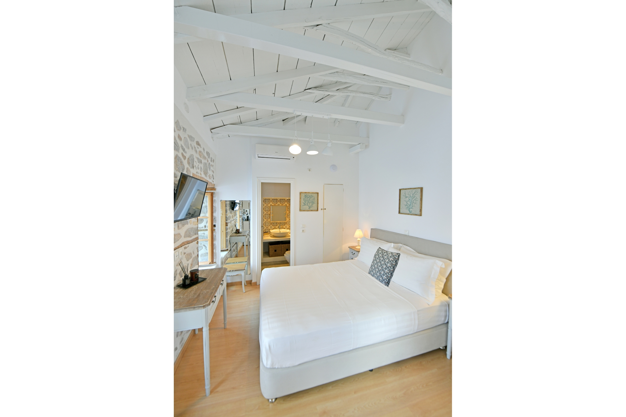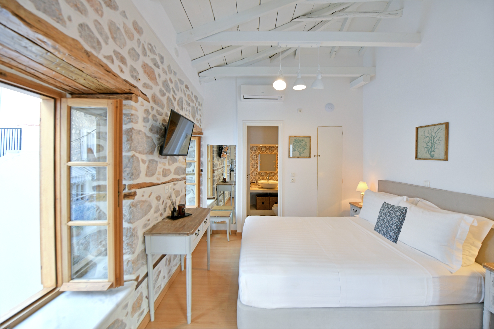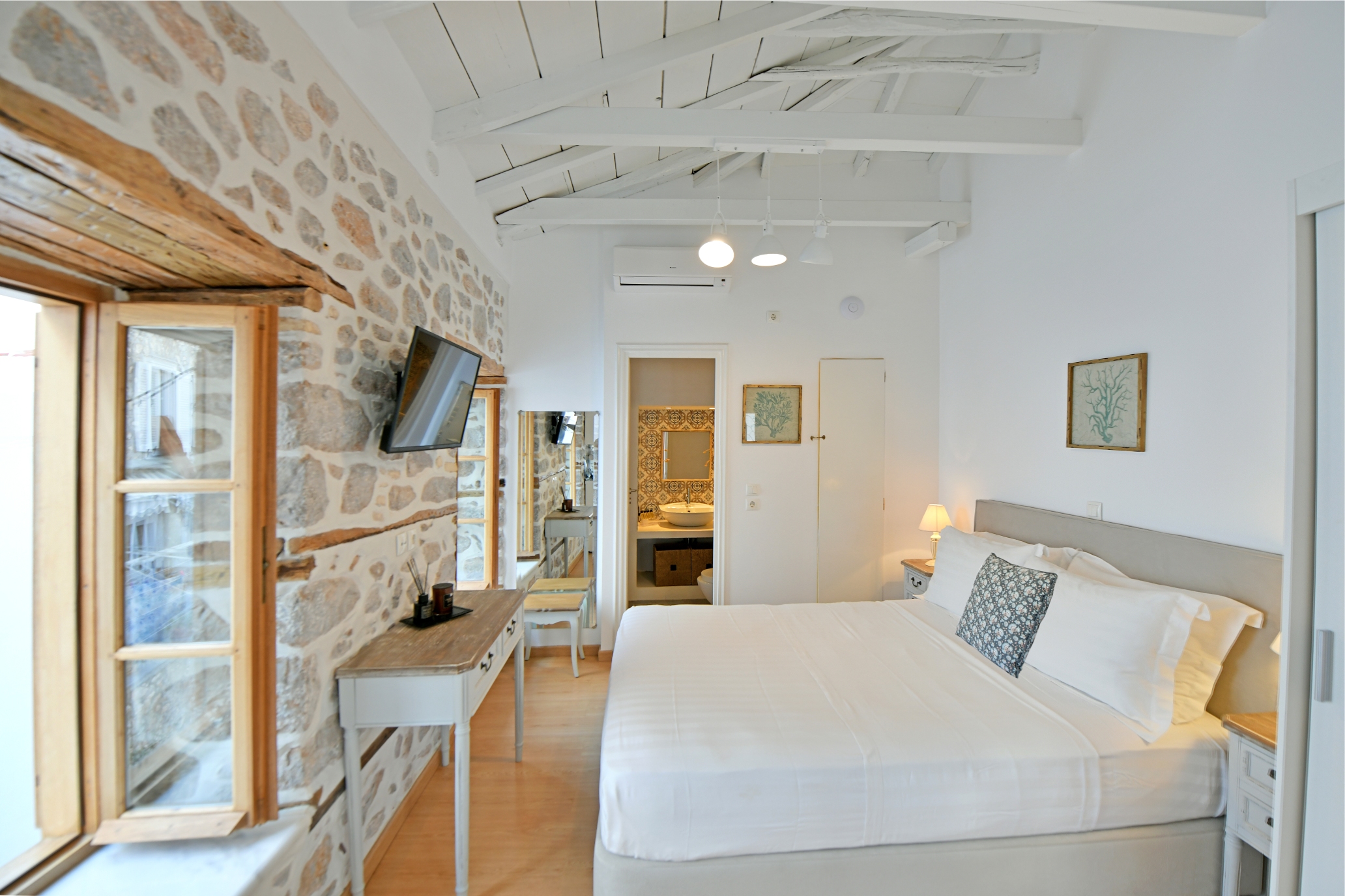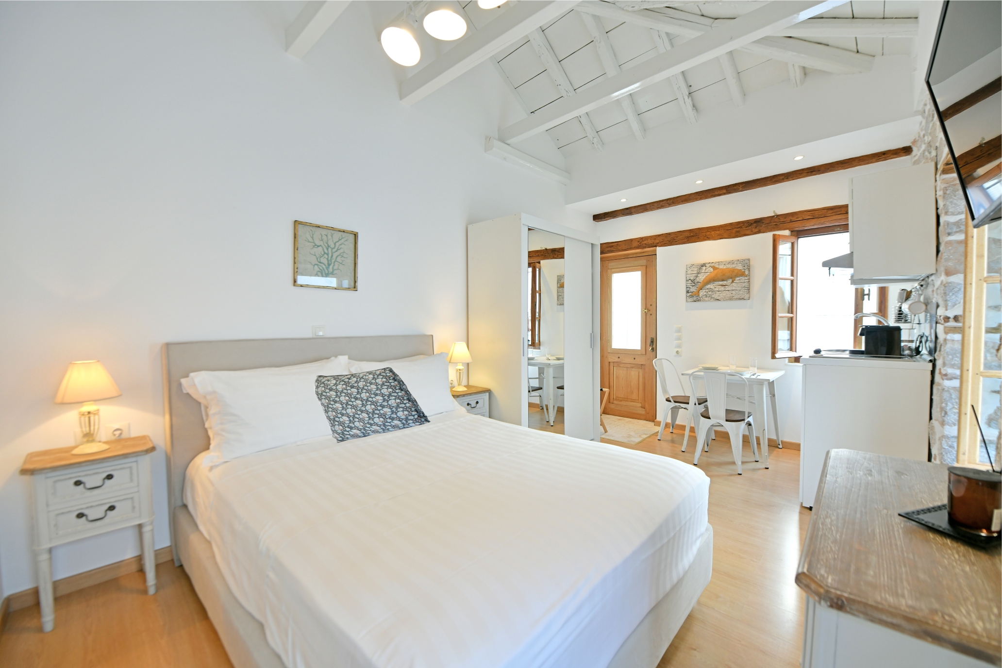 Διαμέρισμα 1ου, θέα σοκάκια “Kalamaraki” : Πρόσφατα ανακαινισμένη Ελληνική παραδοσιακή πέτρινη κατοικία 1ου ορόφου με θέα στα γραφικά σοκάκια της Ύδρας περίπου 23 τετραγωνικά μέτρων με δικιά του είσοδο, με μικρή κουζίνα , τραπεζαρία και μεγάλο διπλό κρεβάτι. Ακριβώς στην καρδιά της κομψής Ύδρας ,δίπλα από το ρολόι, το λιμάνι και τα καταστήματα.